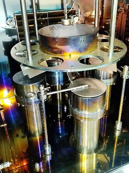 На вакуумной камере установлена дверь загрузки/выгрузки и обслуживания технологических устройств. Подложки устанавливаются в горизонтально расположенный карусельный подложкодержатель – реализована схема напыления «снизу вверх».